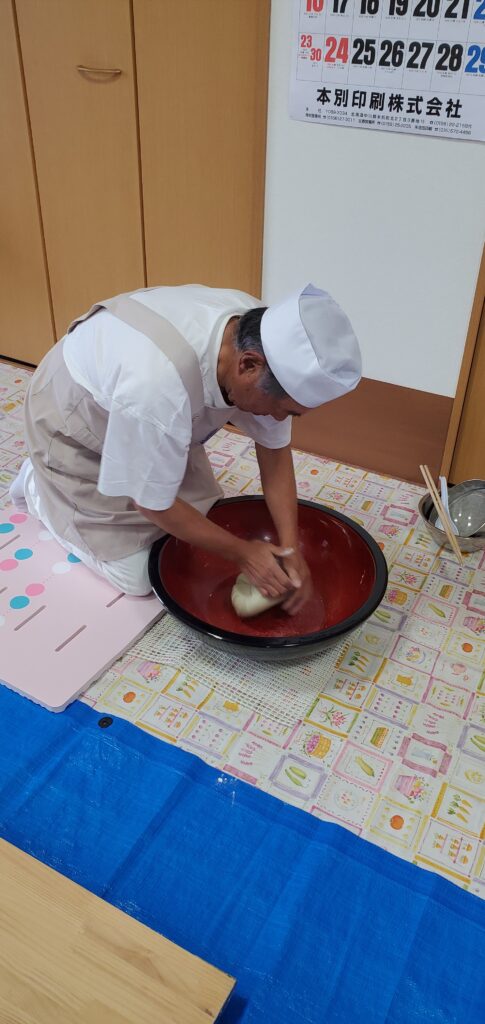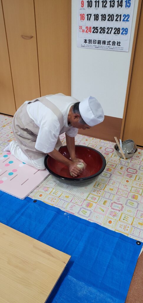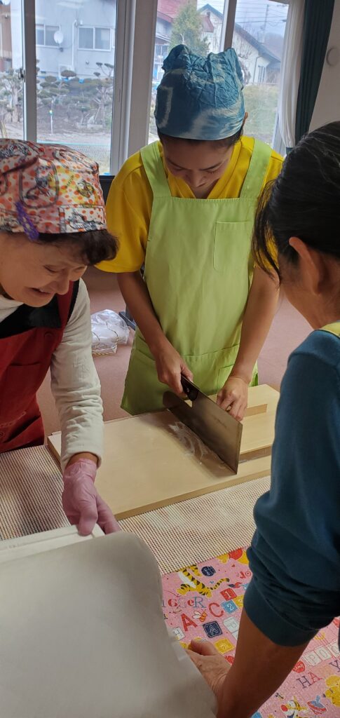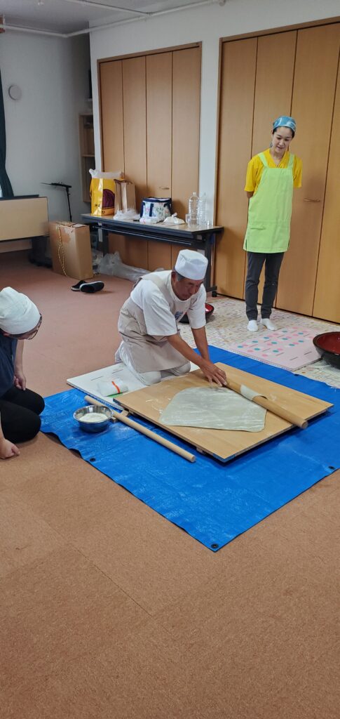 地域住民の方のご協力の下、職員たちもそば打ちに挑戦!