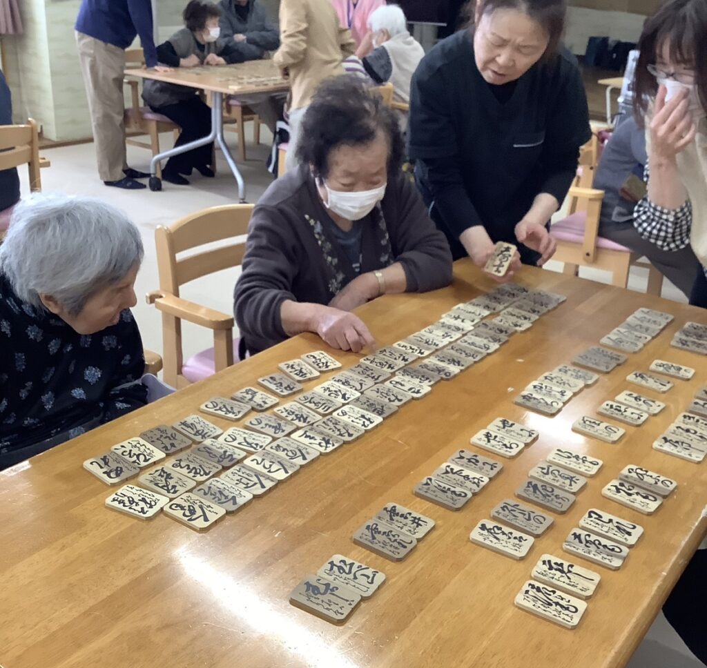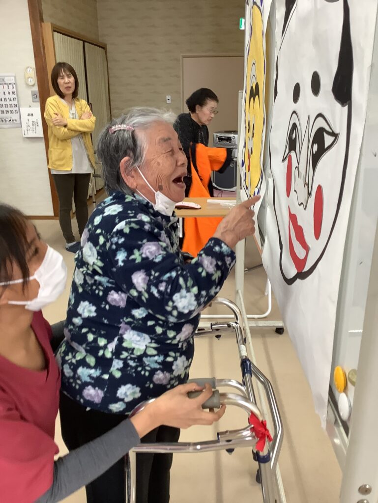 百人一首や民謡、福笑いをして、参加した利用者さんも大いに楽しんでいました。